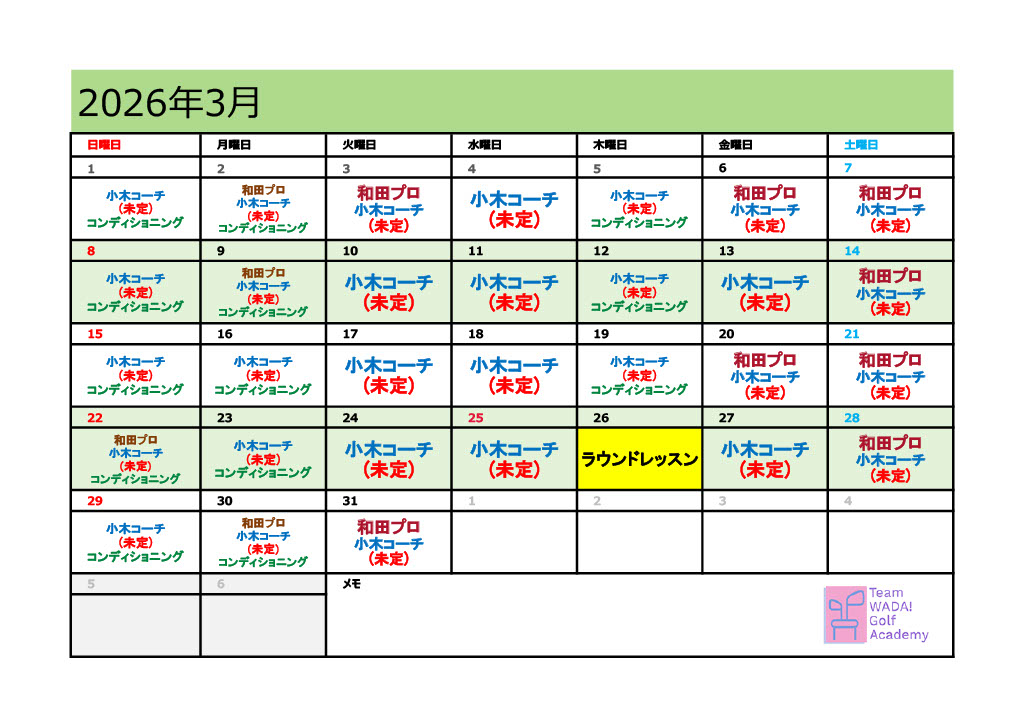トップページ 2020.02.102026.02.13 新着情報 2024年6月1日 インドアゴルフスタジオをオープンいたします! WEB予約はこちら ≫ クリックで拡大 公式LINEアカウントができました! Team WADA! Golf Academyの公式LINEができました!以下からぜひご登録をお願いいたします! ACADEMY MENU [Team Wada] パーソナルレッスン スイング解析ソフトを用いて、マンツーマンのスイングクリニックを行います。完全予約制です。 ラウンドレッスン ラウンドでのスイング解析、コースマネジメント、ショートゲームレッスン、試合に向けてのコースメモ作成等を行ないます。 TEAM WADA プロ、研修生、ジュニアなど、プレーヤーの要求に合わせたコーチ契約です。 ムービーレッスン パーソナルレッスンの記録動画の共有、動画添削によるWEBスイング解析、会員専用の和田プロによるレッスン動画サービス INFORMATION Instagram でフォロー Team WADA Golf Academy